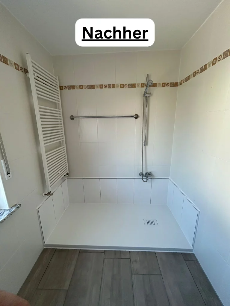 In der Regel dauert der Umbau von einer Badewanne zu einer barrierefreien Dusche nur einen Tag. Am nächsten Tag können Sie Ihr Bad bereits wieder vollumfänglich nutzen – inklusive sicherem Einstieg, rutschfestem Boden und moderner Duschlösung.